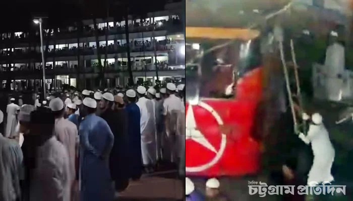 শনিবার (৬ সেপ্টেম্বর) সন্ধ্যা সাড়ে ৭টা থেকে হাটহাজারী মাদ্রাসা এলাকায় উত্তেজনা ছড়িয়ে পড়ে এবং পরে সংঘর্ষের ওই ঘটনা ঘটে।