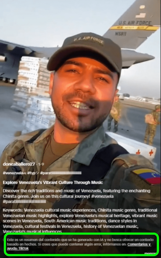 El video que asegura la llegada de un segundo cargamento de ayuda humanitaria de Estados Unidos a Maracaibo es falso. Como comprobamos por medio de nuestro método de verificación, se trata de un contenido generado con Inteligencia Artificial que presenta inconsistencias visuales y narrativas, y que incluso es advertido como tal por la propia plataforma de TikTok, donde se difundió.