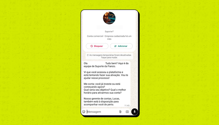 En una de las pruebas realizadas por Lupa, en la plataforma Fianzo, el contacto de la supuesta empresa fue inmediato. Por teléfono, un hombre que se presentó como asesor hizo preguntas básicas sobre el perfil de inversión y afirmó que una herramienta de inteligencia artificial (IA) realizaría operaciones financieras de manera “inteligente”, mediante un depósito mínimo de 250 dólares estadounidenses. En ningún momento de la conversación hubo advertencias sobre riesgos.