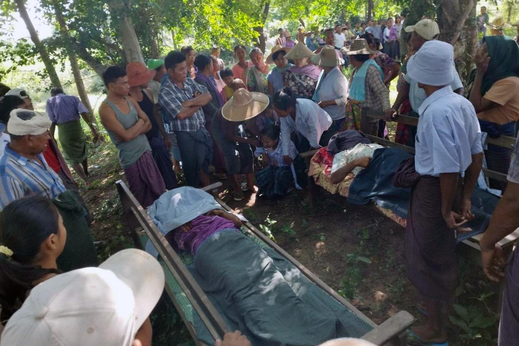 ရုပ်အလောင်းများကို အောက်တိုဘာ ၁၄ ညနေပိုင်းတွင် မြေမြှုပ်သင်္ဂြိုလ်ခဲ့ပြီး ဦးမြင့်ကျော်တွင် သားသမီး ၆ ဦး၊ ဦးမိုးဆန်းဦးတွင် လသားအရွယ် ကလေးတစ်ဦးအပါဝင် သမီးနှစ်ဦး ကျန်ရစ်ခဲ့သည်ဟု ၎င်းတို့က ပြောသည်။