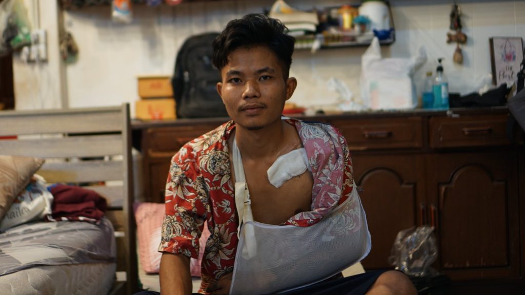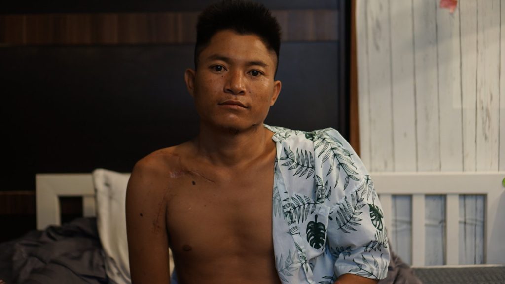 သွေးအဆက်မပြတ်ထွက်ပြီး လက်လှုပ်ရှားမှု မပြုနိုင်တော့သည့် သူ့ကို ထိုင်းနယ်စပ်သို့ ခေါ်ဆောင်ကာ အရေးကြီးလူနာအဖြစ် ကုသရတော့သည်။