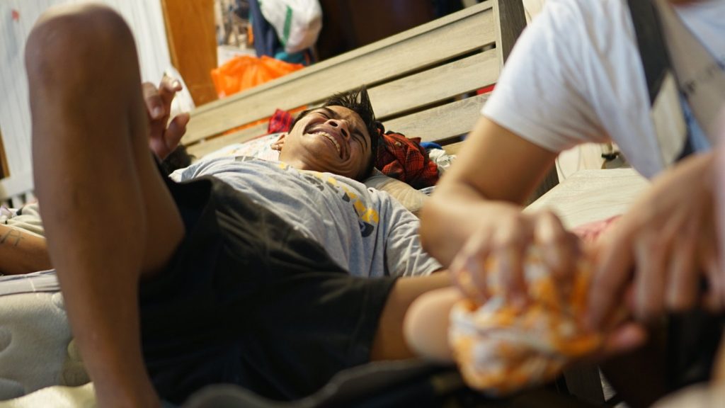 ကုသမှုခံယူပြီးသော်လည်း ကိုယ်လက်လှုပ်ရှားနိုင်မှု အကြီးအကျယ် ထိခိုက်သွားကာ အင်္ကျီဝတ်ရန်ပင် အကူအညီလိုနေသည့် ကိုမောင်မောင်ကြီးက တော်လှန်ရေးတပ်များ၏ လက်နက်လိုအပ်ချက်အတွက် စိတ်ပူသူ ဖြစ်နေသည်။