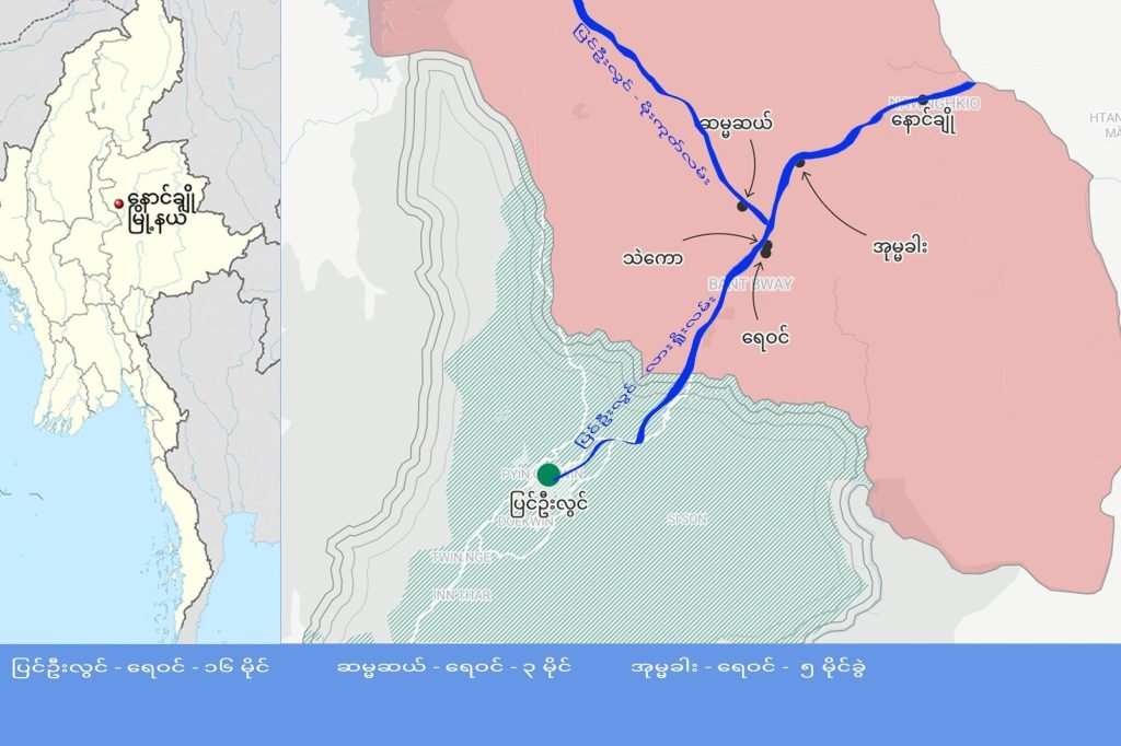 ရှမ်းအခြေစိုက် မြောက်ပိုင်းညီနောင်သုံးဖွဲ့၏ စစ်ဆင်ရေး စတုတ္ထမြောက်နေ့ဖြစ်သော အောက်တိုဘာ ၃၀ ရက်နေ့ကတည်းက ပြင်ဦးလွင်နှင့် အနီးဆုံး နောင်ချိုမြို့နှင့် ဂုတ်ထိပ်လမ်းပိုင်းကို တော်လှန်ရေးအဖွဲ့များက ထိန်းချုပ်ထားသည်။