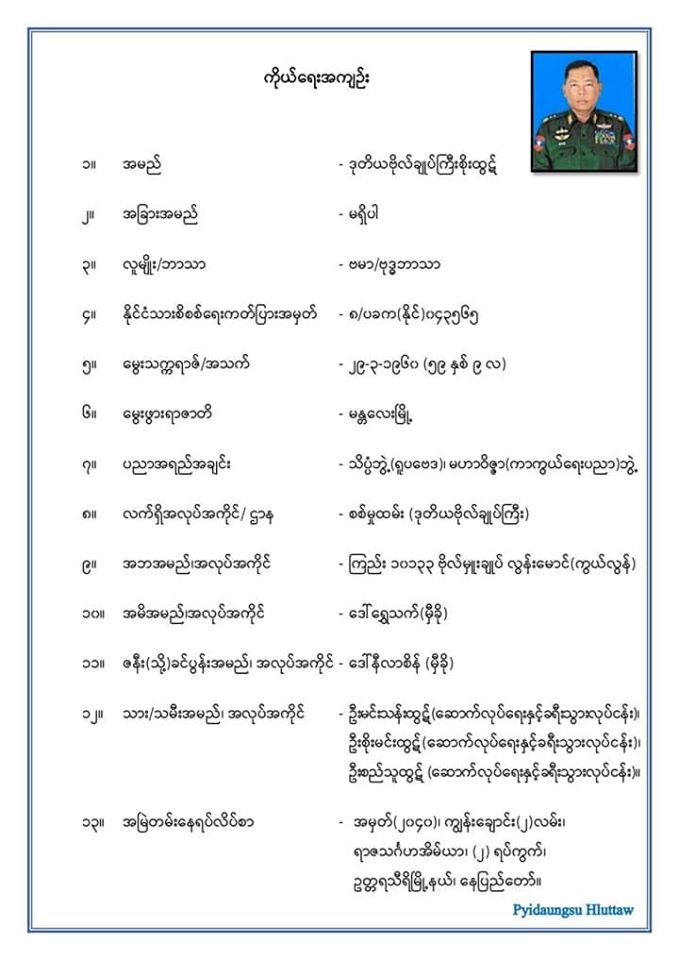 “စီးပွားရေးသမားတွေဆီက ကျပ်သိန်းထောင်ချီ တောင်းတာက သူ့မိန်းမက ရဲမှူးကြီးတွေကို ခိုင်းတာ၊ ပတ်စ်ပို့ကတော့ သူ့သား ခရီးသွားလုပ်ငန်းအတွက် လုပ်ပေးတာ” ဟု ယင်းဖြစ်စဉ်ကို သိရှိသူ နေပြည်တော်မှ အရာထမ်းဝန်ထမ်းတစ်ဦးက ပြောသည်။