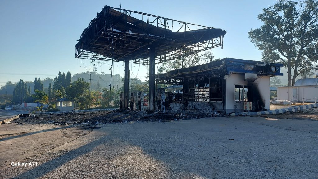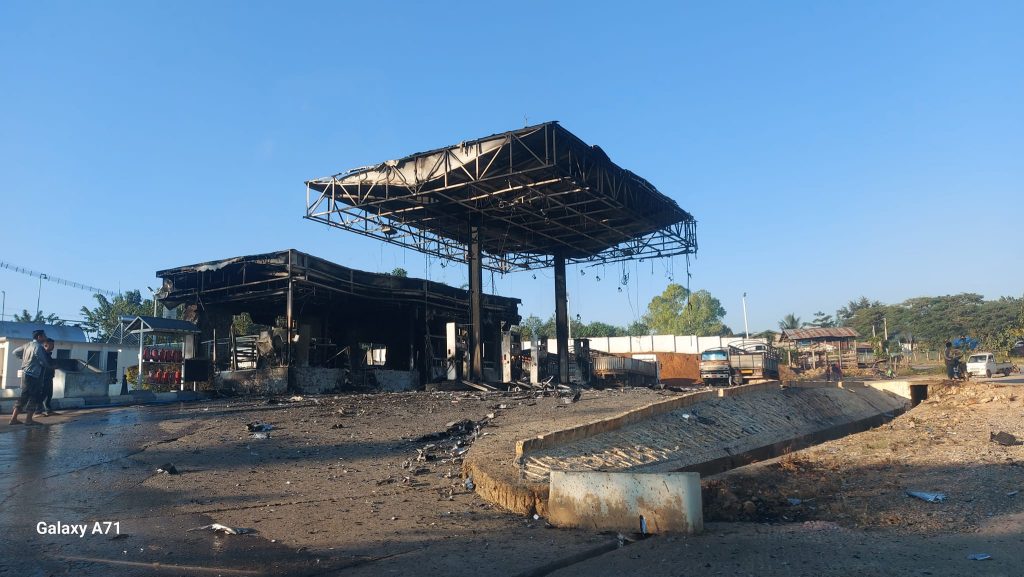 တိုက်ပွဲဖြစ်ပွားမှုအပြီး ည ၇ နာရီခန့်တွင် စစ်ကောင်စီက လေကြောင်းမှ တိုက်ခိုက်ရာ မြို့အထွက် တိုးဂိတ်အဆောက်အအုံ၊ ဂိတ်အနီးရှိ ကုန်ကား ၃ စီး၊ ပန့်စက်သုံးဆီဆိုင် တစ်ဆိုင်တို့ မီးလောင်ပျက်စီးခဲ့သည်ဟု ထိုအမျိုးသားက ဆိုသည်။
