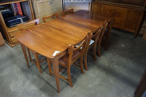 LARGE RUSTIC DINING TABLE W/ 2 LEAFS AND 8 CHAIRS from www.liveauctionworld.com