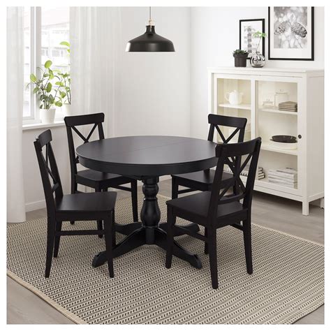 Ikea Round Black Dining Table - Concealed locking function prevents gaps. Matches well with ingolf, skogsbo and bergmund chairs, sold separately. With the extra leaf stored under the table top you can extend the table to seat from 4 to 6 people. Whether an oak table or round dining table, you will find one in your style. Make every meal a special occasion with our range.