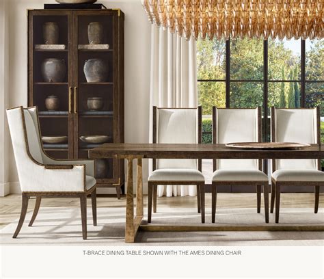 The t brace dining table by restoration hardware (rh) is an embodiment of rustic elegance and timeless design. Inspired by the american industrial age, our collection by julie lawrence evokes its iconic infrastructure, with solid oak timbers and. Carefully calibrated proportions lend refinement.