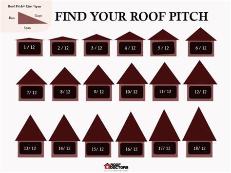 Common Roof Slopes . This guide incorporates a detailed roof pitch chart, roof pitch angle chart, roof slope factor chart, and roofing slope chart to walk you through the various roof slopes from 3/12 to 12/12, helping you determine which slope is best suited for your architectural needs. Discover the different types of roof pitches, from flat roofs to steep slopes.
