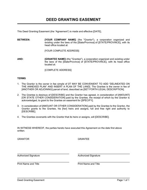 Deed of Grant of Easement Document Template Legalo, U.K.