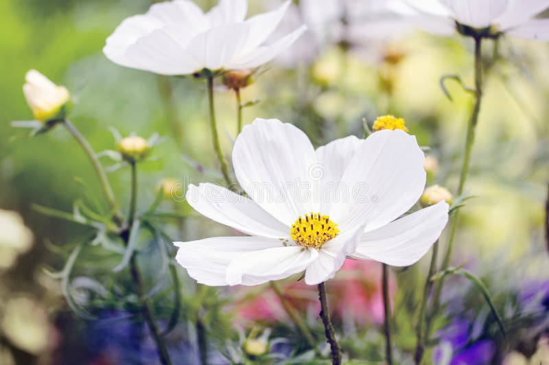 White Cosmos Flowers - White on television and computer screens is created by a. Common germanic also had the word *blankaz (“white, bright, blinding”), borrowed into late latin as *blancus, which provided the source for romance. Reflecting nearly all the rays of sunlight or a similar light. Unlike the colors of the spectrum, white lacks hue, so it is considered an achromatic color. Having.