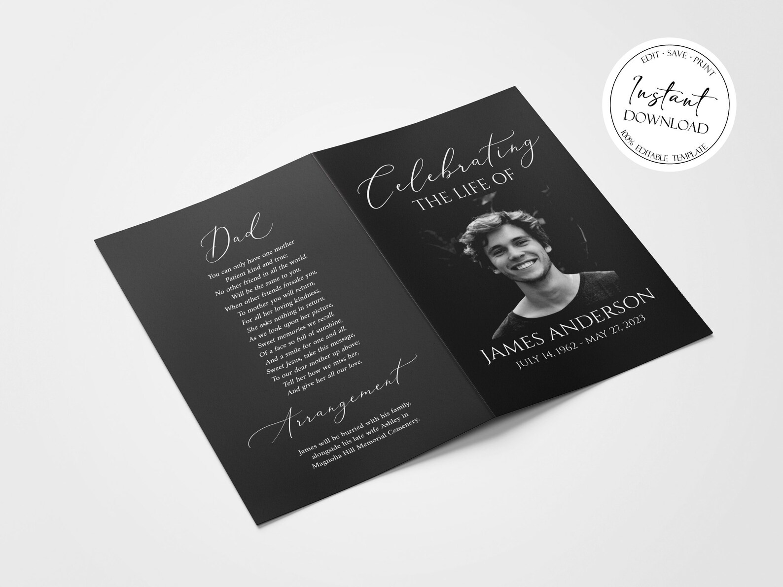 Celebration of Life Program Digital Printable Template Folded