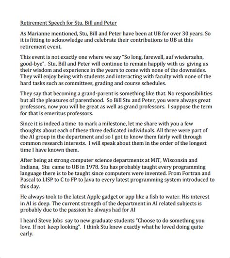 Discover how to write and what to say in a retirement speech using this guide with examples! Specialspeeches has collected some examples of famous and funny retirement roasts (as well as one classic speech by lou gehrig. The sample speeches below will help you craft a meaningful farewell message that connects with your audience and leaves a lasting.