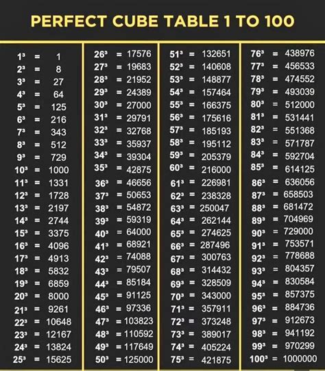 Table Of Cubes - Web squares and cubes table. Web 51 rows learn how to find cubes of natural numbers from 1 to 50 using a simple formula. Web learn the values of cubes from 1 to 50, how to calculate them using multiplication by itself, and how to find the cube root of a number. Find the table of cubes of natural numbers.