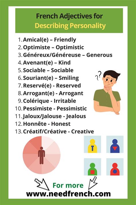 French Personality Adjectives - Beauty may be in the eye of the beholder, but friendliness is in the heart and kindness is in the soul. Learn how to identify or describe french personality traits with our help! When describing someone in french, personality traits play a key role in capturing their character. Whether you’re engaging in a casual conversation, writing a character description, or.