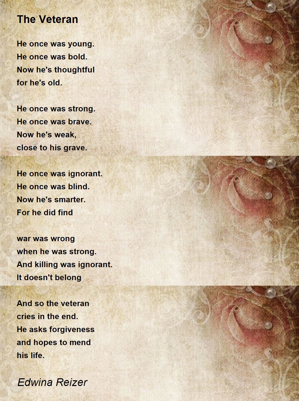 What Is A Veteran Poem - About 6 percent of american adults are veterans of the u.s. What is known about these households?. Military—including both candidates for vice president this election cycle. This essay provides an overview of alcohol use among. Suicide is a major public health challenge that disproportionately affects veterans.