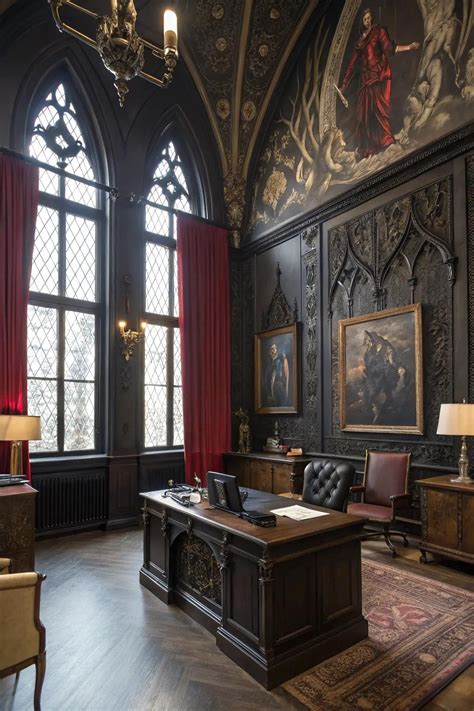 Gothic Office Decor . Discover enchanting decor ideas that boost creativity and impress clients. Dive into dark walls, intricate moldings, and gothic furniture pieces for a unique office.