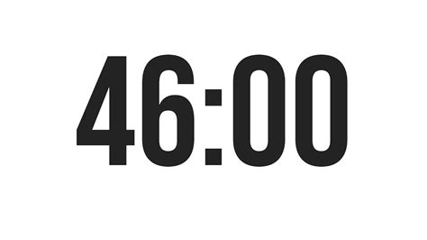 46 Minute Timer - Perfect for long meetings, full workouts & more. Free, fun and easy to use 46 min clock countdown. Use this free and simple online timer to set a 46 minutes countdown for any task or event. Start your 46 minute timer now. A simple, accurate online countdown timer for focus, study, workouts, or productivity sessions.