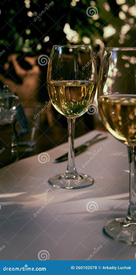 Una Copa De Vino Blanco En Una Mesa De Restaurante Con Un Reflejo Del from es.dreamstime.com