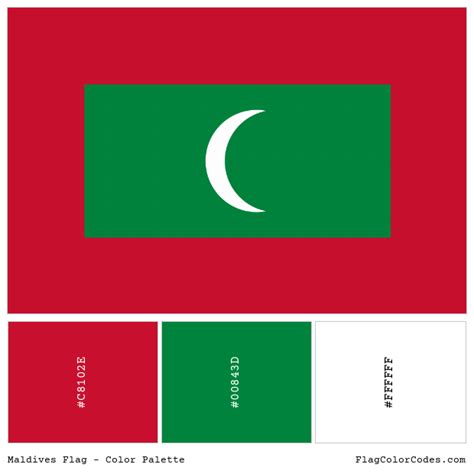 Maldives Flag Color Code - The 3 hues that make up the maldives flag color scheme are red (#c8102e), (#00843d), and white (#ffffff). There are 2 unique palette colors on the flag of maldives called red, green and the color codes of hex, rgb and cmyk will be discussed in the. Together, these colors and symbols reflect the national identity and religious adherence of the.