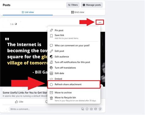 After you update your data using the debug function, as described in our previous tutorial, all you need to do is to click on the options button in the upper right corner of your post, click on refresh share attachment and then hit save. From the dropdown menu, select refresh share attachment (see the above screenshot). After some research, i found a way to.