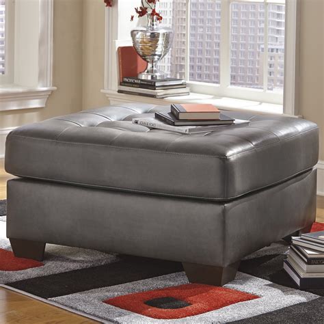 Alliston DuraBlend Gray Oversized Accent Ottoman by Signature Design by Alliston Ottoman Gray With its tastefully tufted durablend® upholstery—providing the look of gently weathered leather—the alliston ottoman offers posh style at. With its tastefully tufted upholstery—providing the look of gently weathered leather—the alliston ottoman offers posh style at a practical price. Top it with a tray table for serving. Quality foam cushion core construction. With its tastefully tufted design and faux leather upholstery. Alliston Ottoman Gray.