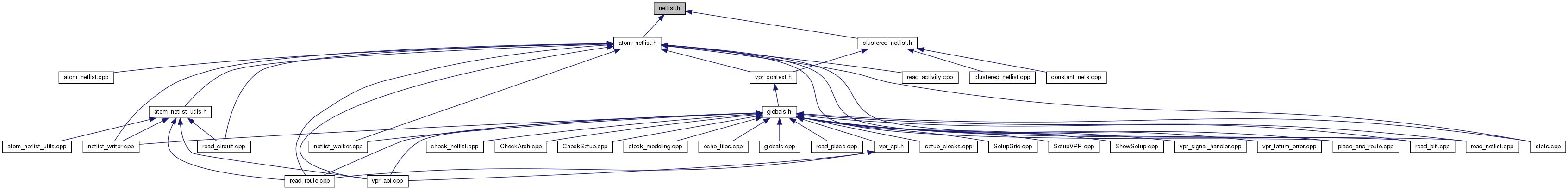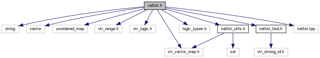 This file defines the Netlist class, which stores the connectivity information of the components in a netlist. It is the base class for AtomNetlist and ClusteredNetlist.