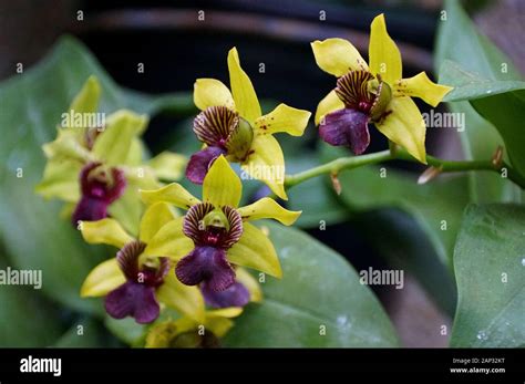 Colorful yellow purple and white flowers of dendrobium crystallinum from www.alamy.com