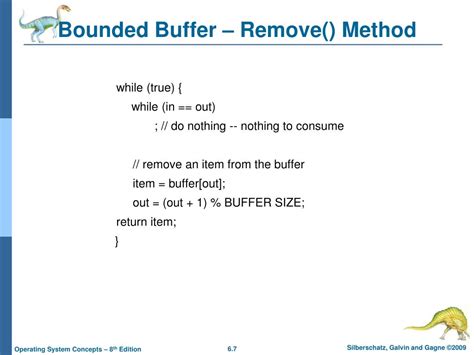 Remove Item From Buffer Programming - Adding and removing items from the bounded buffer (producer/consumer problem). Accessing memory buffers should not be allowed to producers and consumers at the same time. For example, when the buffer is filled, producers must wait for consumers to remove elements from the buffer, allowing more space for newer items. Protects the actual insertion or removal of items in the buffer..