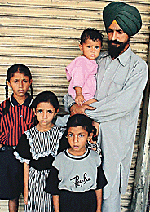 Mahavir Singh with his four daughters, who have been rendered homeless. — Photo by Rajesh Bhambi |