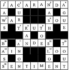 Across 1. Tropical American tree with delicately coloured flowers 5. What Tolstoy wrote