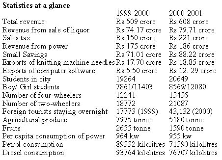 City registers increase in revenue, software exports Chandigarh, January 5 The publication is brought out annually by the Directorate of Economics and Statistics (Statistical Cell) of the Chandigarh Administration. The Abstract-2001 is quite extensive and touches almost all socio-economic aspects. It presents statistics pertaining to various aspects of the economy of Chandigarh. The UT Administrator, Lieut-Gen J.F.R. Jacob (retd) yesterday released the publication, Statistical Abstract-2001. The figures will be of immense help for planners, administrators. It also gives information about agriculture, forest, health, livestock, industry, energy, roads, water supply, trade and finance, education, labour, employment, transport, communication, food and civil supplies, social welfare and Scheduled Castes’ welfare, local bodies, tourism, entertainment, newspapers, intoxicants, state domestic product, electoral statistics, employees and the Ninth Five Year Plan, among others. The scope and coverage of the publication have been further enlarged by introducing new tables and improving upon the old ones. Chandigarh in Figures-2001 section of the publication contains data on important sectors of economy in a concise form. Detailed data pertaining to population, villages small-scale industries, water supply, government employees, budget and expenditure, police, health and family welfare, climate, rainfall and land have also been incorporated in the publication. Similarly, the 13th edition of Census of Government Employees Chandigarh Administration-2001 contains data on government employees, work charged, sanctioned and filled-up posts, basic pay etc. It also contains information about employment of SCs, STs, OBCs, ex-servicemen, handicapped persons and deputationists from Punjab, Haryana and Himachal Pradesh, besides information about total recruitment made on ad hoc and regular basis and number of employees who retired on superannuation, died, resigned or whose services were terminated. Likewise, the second edition of Census of Public Sector Undertaking and Local Bodies Employees-2001 has classified data on employees of public sector undertakings and local bodies. The data for all the four publications has been collected, complied and collated by Directorate of Economics and Statistics, Chandigarh Administration. |