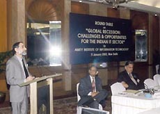 Mr Kiran Kramnik, President of National Association of Software and Service Companies (Nasscom), speaking at an interactive roundtable conference on “Global Recession: Challenges and Opportunities For the Indian IT Sector,”organised by the the Amity Institute of Information Technology.