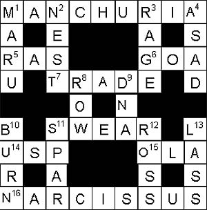 Down 1. A raga of Hindustani music 2. What birds wing towards 3. Anger; wrath 4. Mirza Ghalib also used this pen-name sometimes 8. Quarrel; strife 9. Contains the genetic code (inits.) 10. Set to fire 11. Make motions of attack and defence 12. Discoverer of the malarial mosquito 13. Young girl, often in old usage Solved
