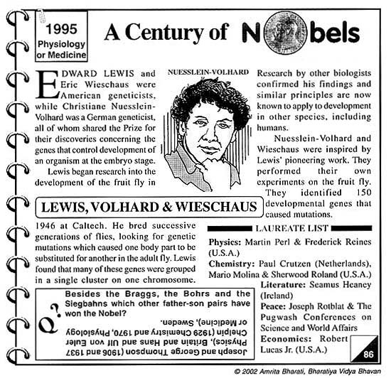 1995, Physiology or Medicine: LEWIS, VOLHARD & WIESCHAUS