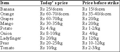 witness 60 pc rise Chandigarh, April 19 Since the supply of fruits coming from other states, including Maharashtra, Andhra Pradesh, Karnataka and Delhi, has been badly hit, consequently, traders and farmers from surrounding villages coming to the city market are making fast bucks. Despite supply of vegetables by farmers on tractor-trailers, the prices have increased sharply. Mr Brij Mohan, a leading trader of Sector 26 fruit and vegetable market, said, “The supply of mangoes, oranges, bananas, grapes and pomegranates has been badly affected. Most of the traders in the market are selling fruits from their old stocks as the supplies from Nagpur, Hyderabad, Bangalore and other markets have almost come to naught.’’ He said the retail price of mango crossed Rs 30 per kg against Rs 20 per kg before the strike. The price of bananas has increased from Rs 15 per dozen to Rs 25 per dozen. Since there was no supply of grapes to the city market, the traders who had stored stocks in the cold store, were selling these at a high price. Before the strike, if grapes were available for Rs 20-25 per kg, today the retailers were asking Rs 60 to Rs 70 per kg for these. The traders said the retail price of potato increased to Rs 4 per kg as against Rs 1-2 per kg before the strike. Similarly, the price of onions had increased from Rs 4 per kg to Rs 8-10 per kg during the past one week. The price of tomato had witnessed a maximum increase from Rs 2-3 per kg to Rs 10 per kg. Another trader in the market disclosed that the price of oranges had increased from Rs 35-40 per dozen to Rs 60- 70 per dozen due to strike. The Chandigarh Transport Association has claimed that tempo unions, which have so far been participating in the strike passively, have agreed to participate in it actively. It has warned the government that like southern states, the strike would be intensified in the region as well. If the government failed to accept the demands, there would be no movement of goods except milk and cooking gas to the region. Mr Rajiv Sood, general secretary, Chandigarh Transport Association, lamented that instead of accepting genuine demands of the transporters, the government was creating problems for the public. He said though they were paying a substantial amount as road tax and permit fee, they were asked to pay toll tax and entry fee for using roads. The truckers, he said, were denied renewal of insurance of old trucks, and the premium had been increased manifold.