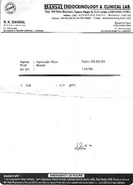 over blood reports Ludhiana, September 11 Mr Pushpinder Singh, a local resident, has complained that they had to go through mental agony for the whole day because of the “wrong” blood test report by the DMCH clinical laboratory. According to Mr Pushpinder Singh, his wife Ms Ravinder Kaur was not keeping well for the past few days. She had some gastric trouble. The couple approached a leading gastroenterologist for consultation, who suggested that since the patient looked slightly pale, her haemoglobin should be checked. He referred the patient to DMCH Clinical laboratory for the blood tests. On September 9, 2003, the couple went to DMCH for blood test. They were told to collect the report on the same day in the evening. “I was shocked to see the haemoglobin of my wife, it was only 6.7 gms. We were in tension and we consulted one of my friends, who’s a doctor. He said since the blood was only 6.7 gms, the patient should be given at least a bottle of blood as iron tablets or capsules could not increase the blood level faster. But he also said they should get it checked once again from another laboratory to clear the doubts since the patient did not look much pale to the him”, said Mr Pushpinder Singh. The couple went to another hospital in Model Town for the blood examination report and that report showed the haemoglobin count to be 11 gms. The couple got panicky and approached the doctor once again, who said they should get it checked from one more laboratory to see which report was correct. Mr Pushpinder took his wife to another Endocrinology and Clinical lab in Tagore Nagar, the same evening. The report showed HB count at 11.9 gms. “You can understand, how we felt. My wife was so upset that she refused to eat anything. We were really helpless but at the same time, we never wanted to take any risk. It is such a prestigious institute, and such an error is really unfortunate”, said Mr Pushpinder Singh. The DMCH doctor who was treating the patient, when contacted said such a lapse should not occur. He assured that he would look into the matter personally. One of the interns in the Pathology Department, when contacted, said such a large variation should not be there. “We take blood samples of more than 400 patients every day, such an error has never been reported so far. It must be a human error. There are chances that the blood reports of two patients with same name were exchanged. But, we assure that such a mistake will not be repeated again”, said the doctor. |