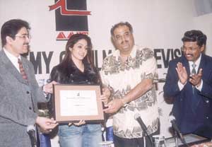 AAFT chief Sandeep Marwah, film producer Boney Kapoor and actress Sridevi at a function. |