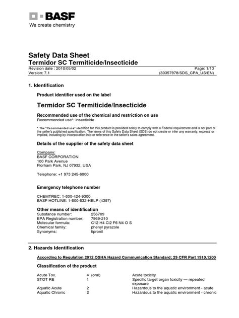 Termidor SC Termidor Termite Treatment Spray Toxicity, Label & MSDS