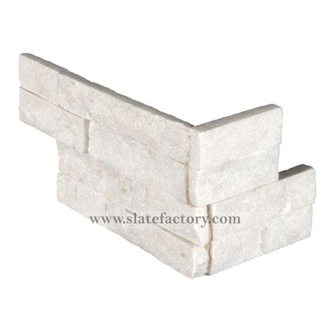 Ledger Stone Corners - Transform your surrounding spaces into a visual. Strips of stone are stacked and glued together to form a panel that is easy to install. Cool white tones in this elegant split face ledger stone panels, we recommend both interior and exterior applications like backsplash, feature wall and fireplace design. Pieces can easily be laid in a pattern or single layout.