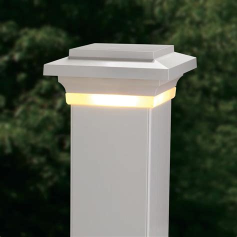 Timbertech Post Caps - Elegantly define space and heighten visibility with a soft halo of light. The timbertech classic composite series post cap crowns the top of a timbertech classic. They are available in black and white colors. Elevate the aesthetic appeal of your deck while ensuring safety and visibility with this functional and stylish lighted post cap. Available at the deck store online.