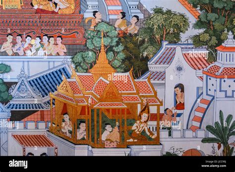 Thai temple mural on the wall of the famous Wat Phra Si Rattana from www.alamy.com