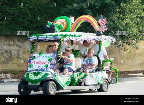 A golf cart float decorated in beach themes during the annual from www.alamy.com