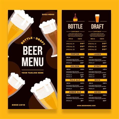 Design Beer Menu - With just a few clicks,. Custom beer menu templates created by real bars, restaurants, and breweries. Web see the best beer menu designs from around the us. Customise the design including colors, fonts and layout in seconds. Web this platform offers various customizable templates that businesses can use to create their beer menus.
