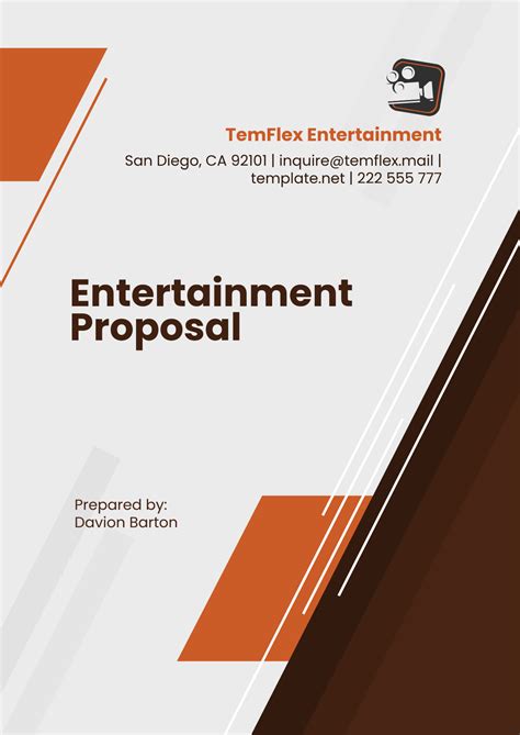 Entertainment Media Proposal - Edit a professional entertainment event proposal online for free. Use it to save time writing better proposals. An entertainment proposal template is a document that outlines the details and plans for a proposed entertainment project or event. This free entertainment proposal template is written for anyone that offers entertainment services. Craft a comprehensive and engaging media proposal in no time!