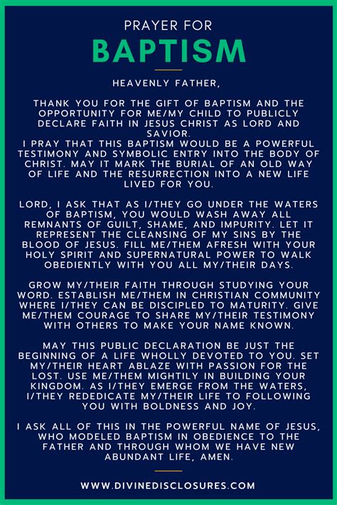 Lord, thank you for the precious gift of baptism, that we can publicly declare our love and passion for you. May your spirit guide them through. Each prayer is accompanied by a relevant bible verse to guide your reflection and deepen your spiritual connection with god during this important time.