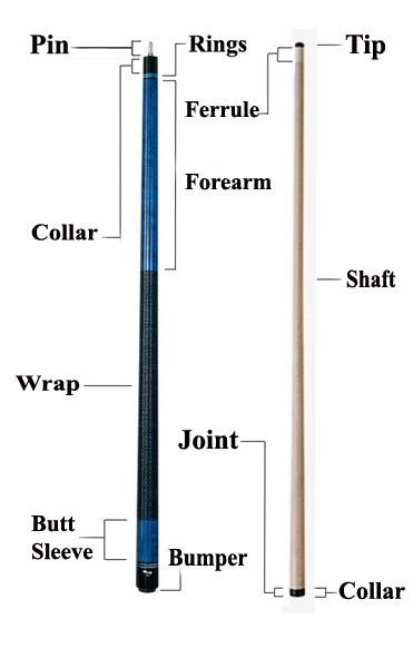 Pool Cue Anatomy - This page will give you the basics of a pool cue, breaking out the 13 primary components of the pool cue from the pool cue tip to the bumper. There are two main parts of a pool cue — the shaft and the butt. Discover the importance of the butt, shaft, ferrule, tip, joint, and more. In this article, we.