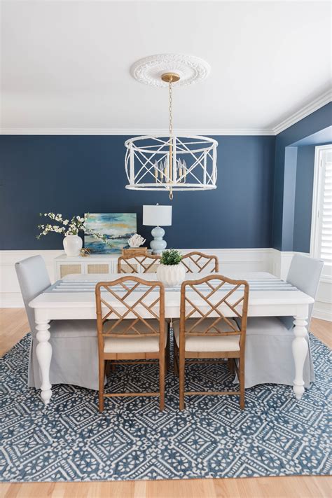 Navy CoastalInspired Dining Room Transformation Navy Dining Rooms See more ideas about dining room design, dining room decor,. Explore elegant decor, color schemes, and layout tips for hosting. Creating a beautiful navy blue themed dining room can be achieved through strategic usage of contrast and design elements. Transform your dining space with 25 navy blue dining room ideas. This dramatic dining room combines elegant silk drapery with contrast. Navy Dining Rooms.