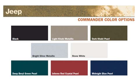 Jeep Commander Colors - A tool i like to use to give me a definitive answer about what, exactly, a jeep i'm buying (or have bought) has (or had) as standard equipment is the chrysler equipment listing. Why your steering wanders or seems loose one of the biggest issues with jeeps and a topic that almost repeats itself in a new thread each week.