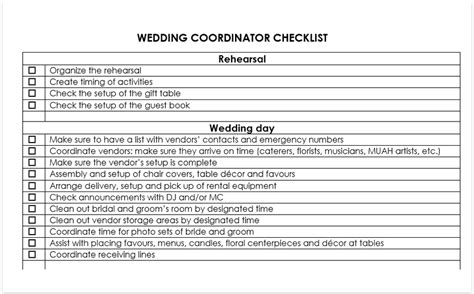 Web here, the main idea and tasks of a wedding coordinator are to organize the whole planning process from the idea to its completion. Web a blank wedding coordinator checklist template is used to help wedding coordinators stay organized and keep track of important tasks and details involved in planning a. Web the following is an outline of some of the tasks that randy taylor weddings will handle for your wedding:
